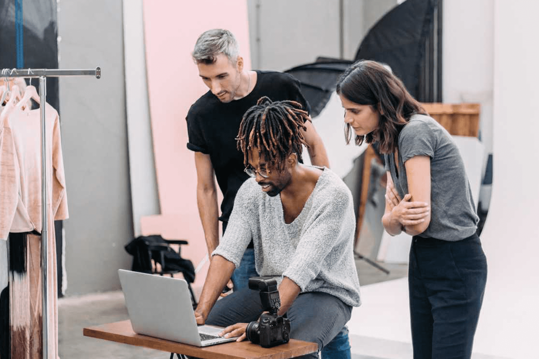 - If person/people aren't working on something specific or when in doubt, then a photo of someone on a phone, laptop, or tablet will also work.